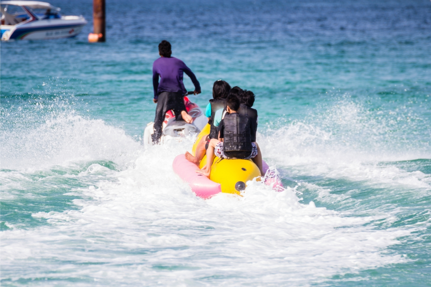 There are a lot of water sports in Andaman which you can appreciate, yet there are only some that you will do with your friends or families together. Banana Boat Ride in Andaman is one of them. The ride is planned so that it can oblige up to 6 people at once, so you can share the fun and euphoria with fellow mates. Appraised among the top relaxed water sports in Andaman, Banana Ride is an inflatable 'banana boat,' with holders and an inflated foot padding as an afterthought that allows you to sit on it with proper balance. The boat is then connected with the speed boat safely with a rope and hauled along the water with high energy, which allows you to ride the waves.